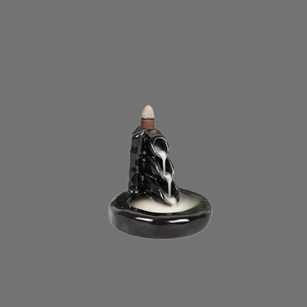 Ceramic Black Incense Holder| Dhoop Batti Fountain Backflow Smoke Fragrance Fountain Incense Holder For Home Fragrance(Black)| Dhoop Holder/Incense Stick Holder/Agarbatti Stand